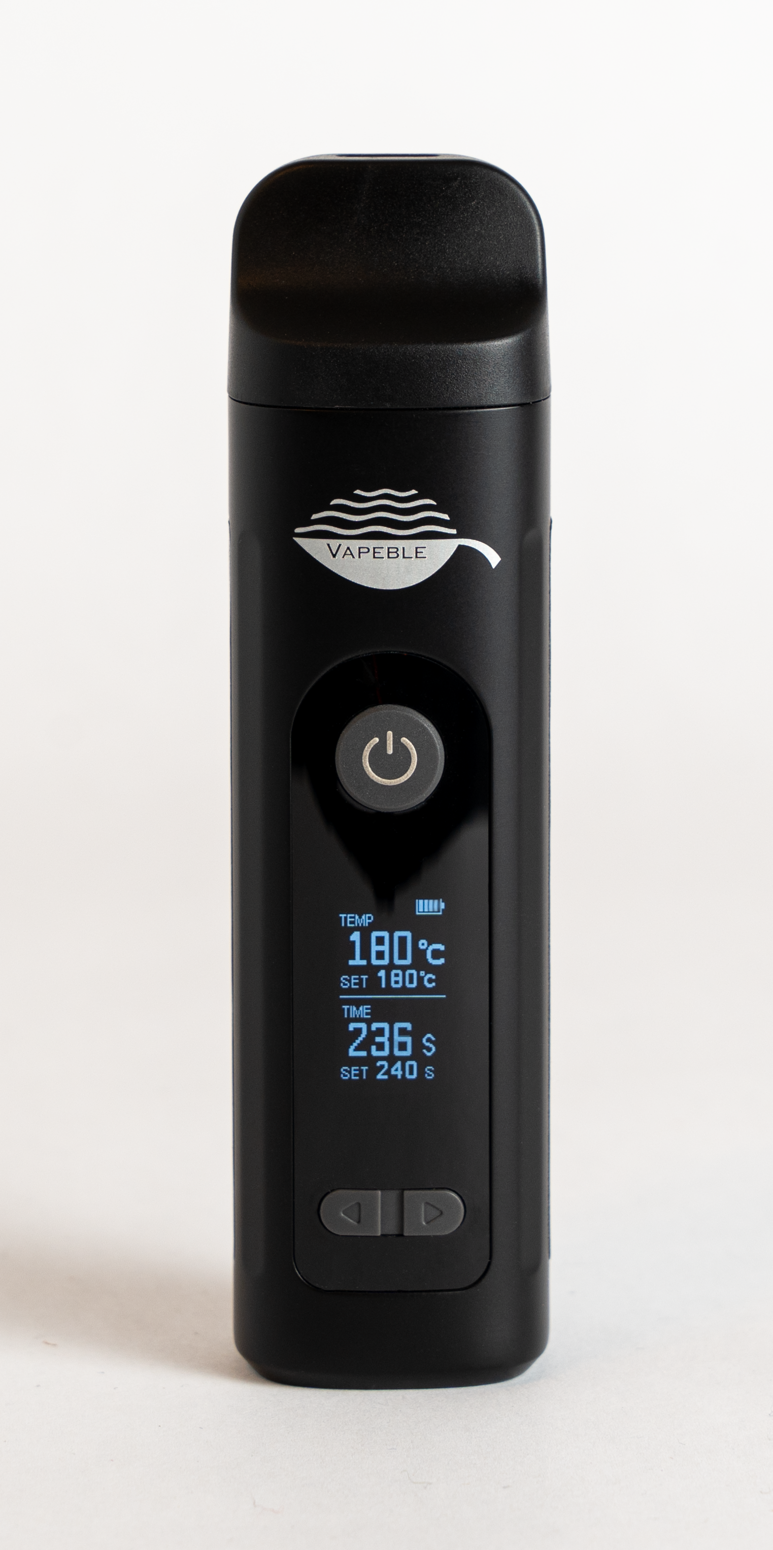 The battery is 2600mAh and one charge lasts for 6-8 sessions. The session duration can be set using the buttons on the display. It can be set between 3 and 6 minutes. The OLED display shows the remaining time and then switches off. The device supports USB Type-C and can be charged quickly anywhere. Perfect for vaping on the go. We also offer matching dosing capsules. The capsules can also be used to vaporize oil, dabs and other herbal concentrates.