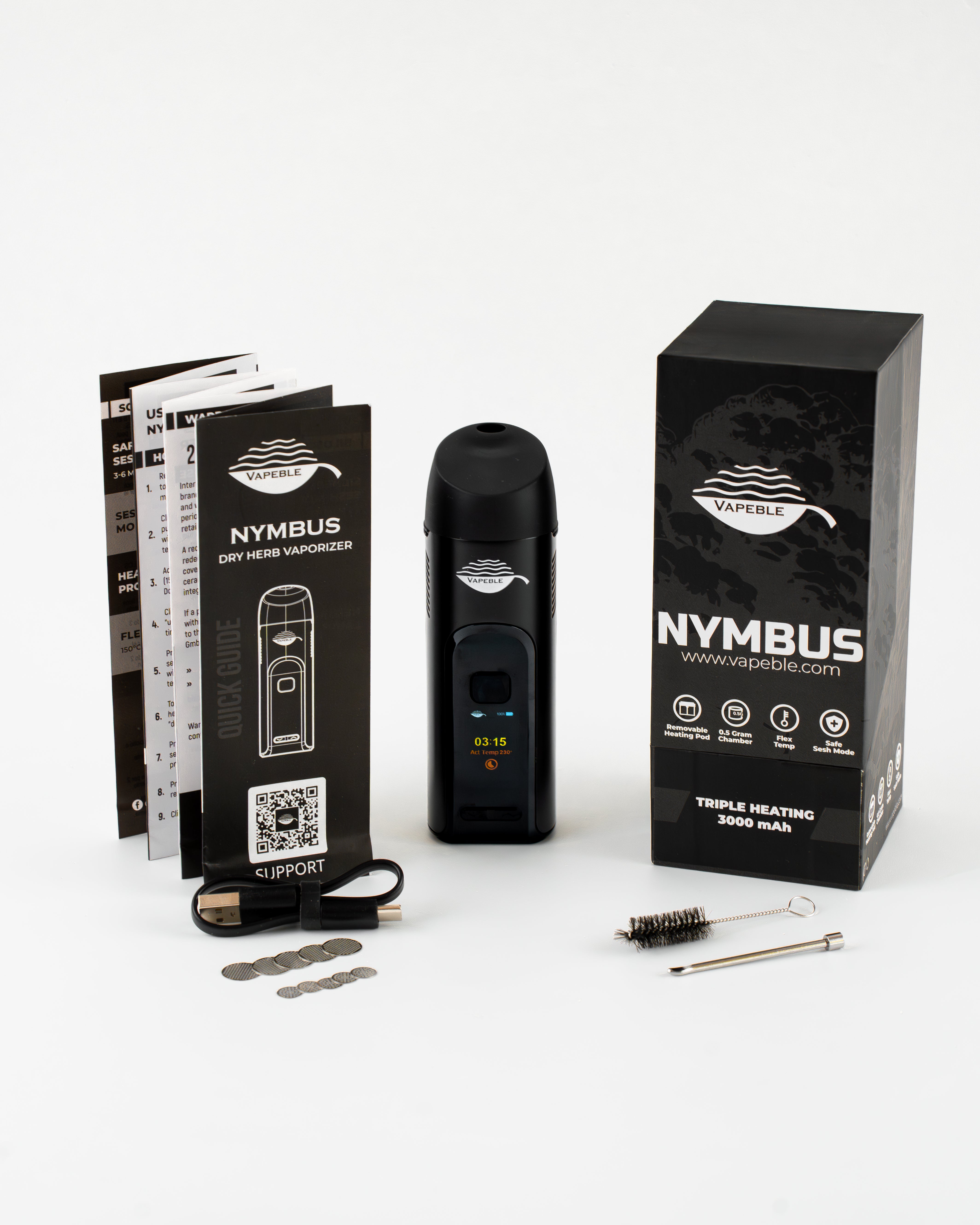 Vapeble Vaporizer, engineered in Germany since 2017, the newly developed Nymbus Vaporizer combines numerous technological innovations to vaporize dry herbs even more efficiently. For the first time, the THS vaporization system integrates three heating methods - conduction, convection and infrared - which bring the herbs to the optimum temperature under computer control so that all active ingredients are fully released. The result is a particularly rich and pure-tasting herbal vapor.